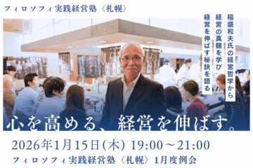 お知らせ 2026/1/15 基調講演「株式会社はなまる 代表取締役会長 清水 鉄志氏」塾生以外の方も参加できる基調講演を開催いたします。講師は、株式会社はなまる 代表取締役会長 清水 鉄 続きを読む… 投稿者:事務局フィロソフィ実践経営塾〈札幌〉 投稿日時:1か月2025年12月28日前